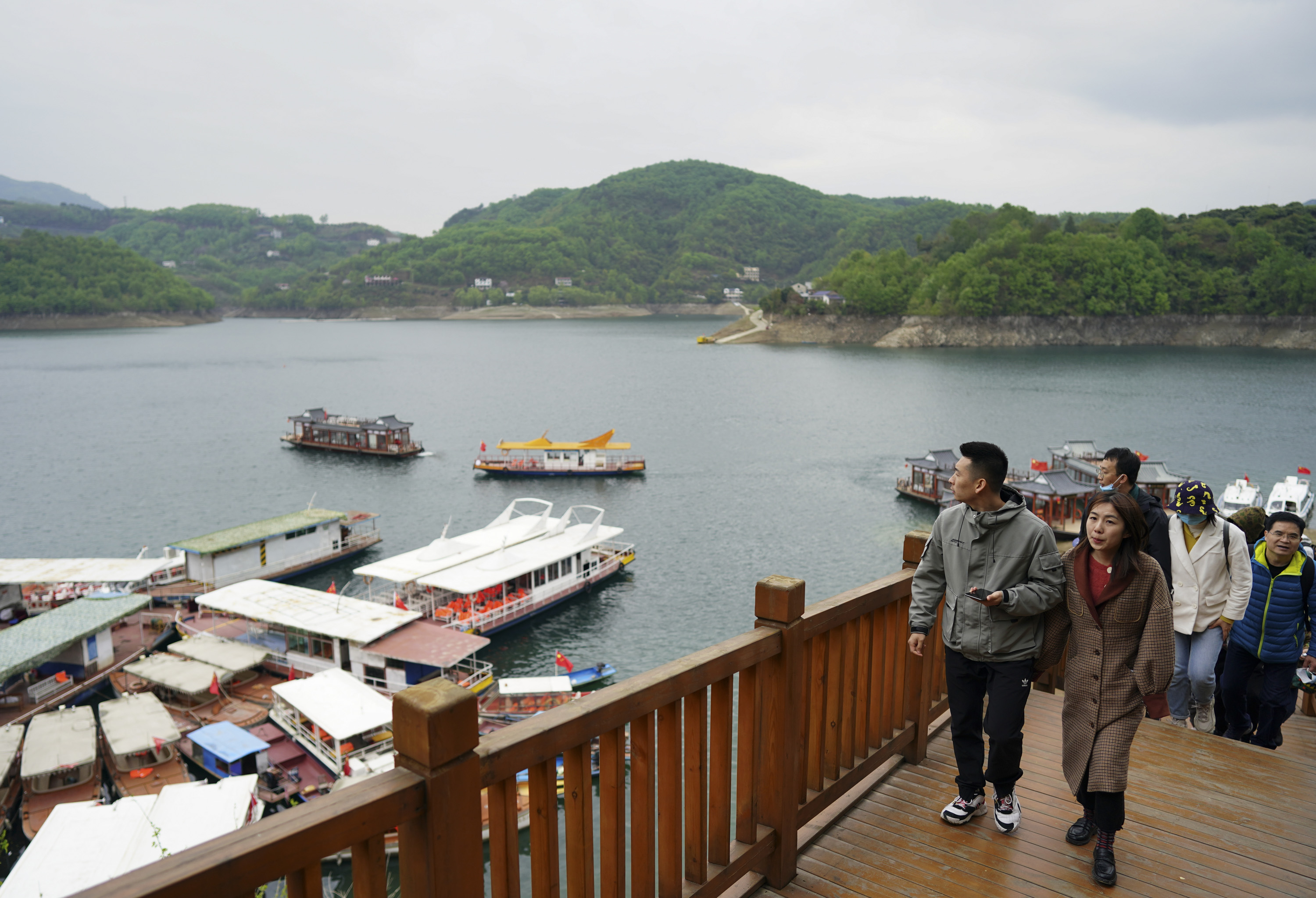 游人在陕西省安康市瀛湖景区游览(4月4日摄)。