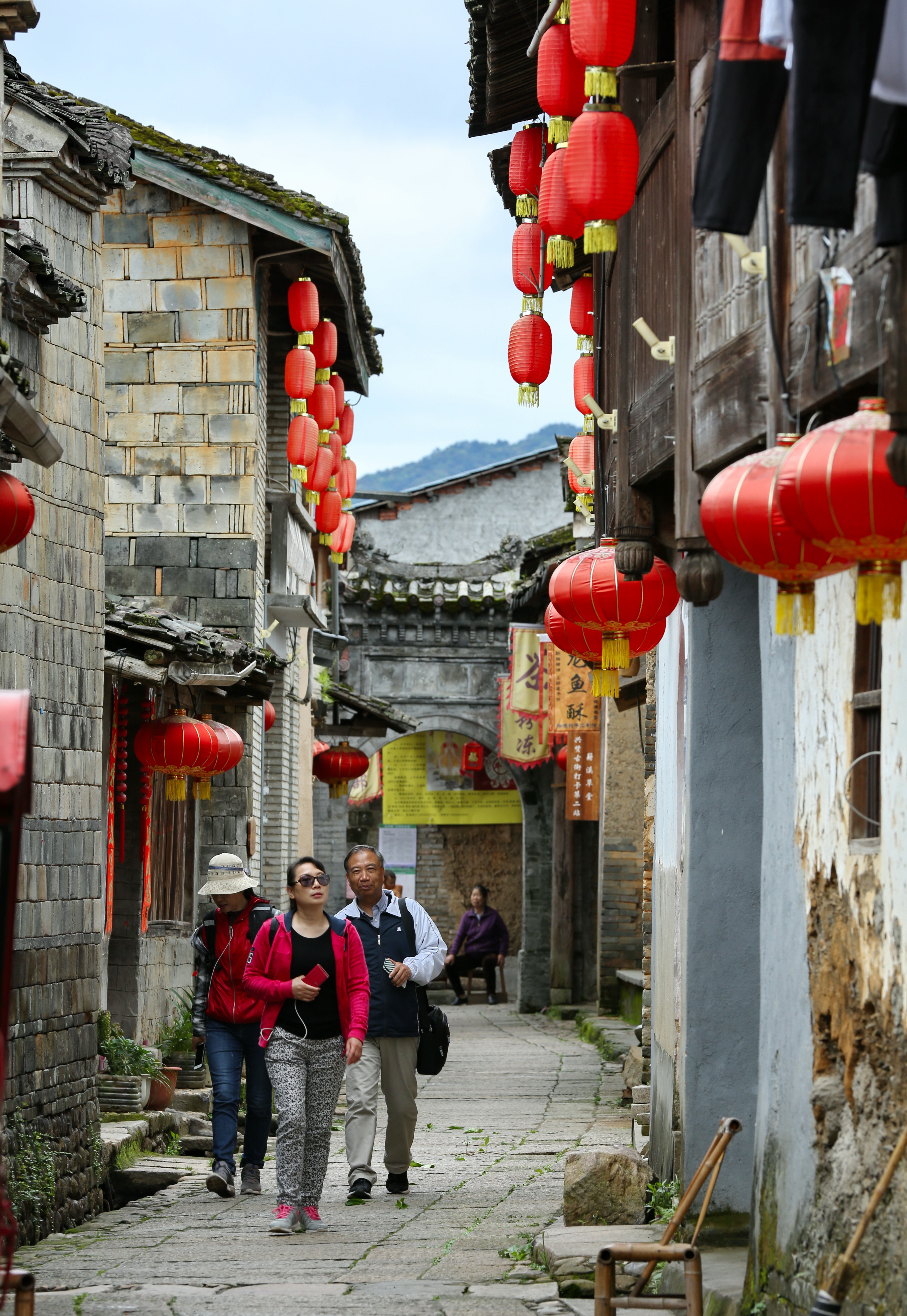 4月15日,在福建省武夷山市五夫镇,游客在兴贤古街上游览。