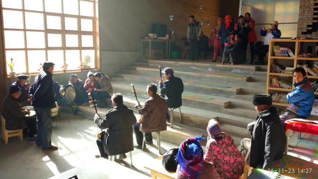 他们请皮影戏班的老人来活动中心演出,村民们都赶庙会一样跑过来听。同时挖掘村里的剪纸技艺,把传统习俗的文化活力,注入这个现代生土建筑空间里。