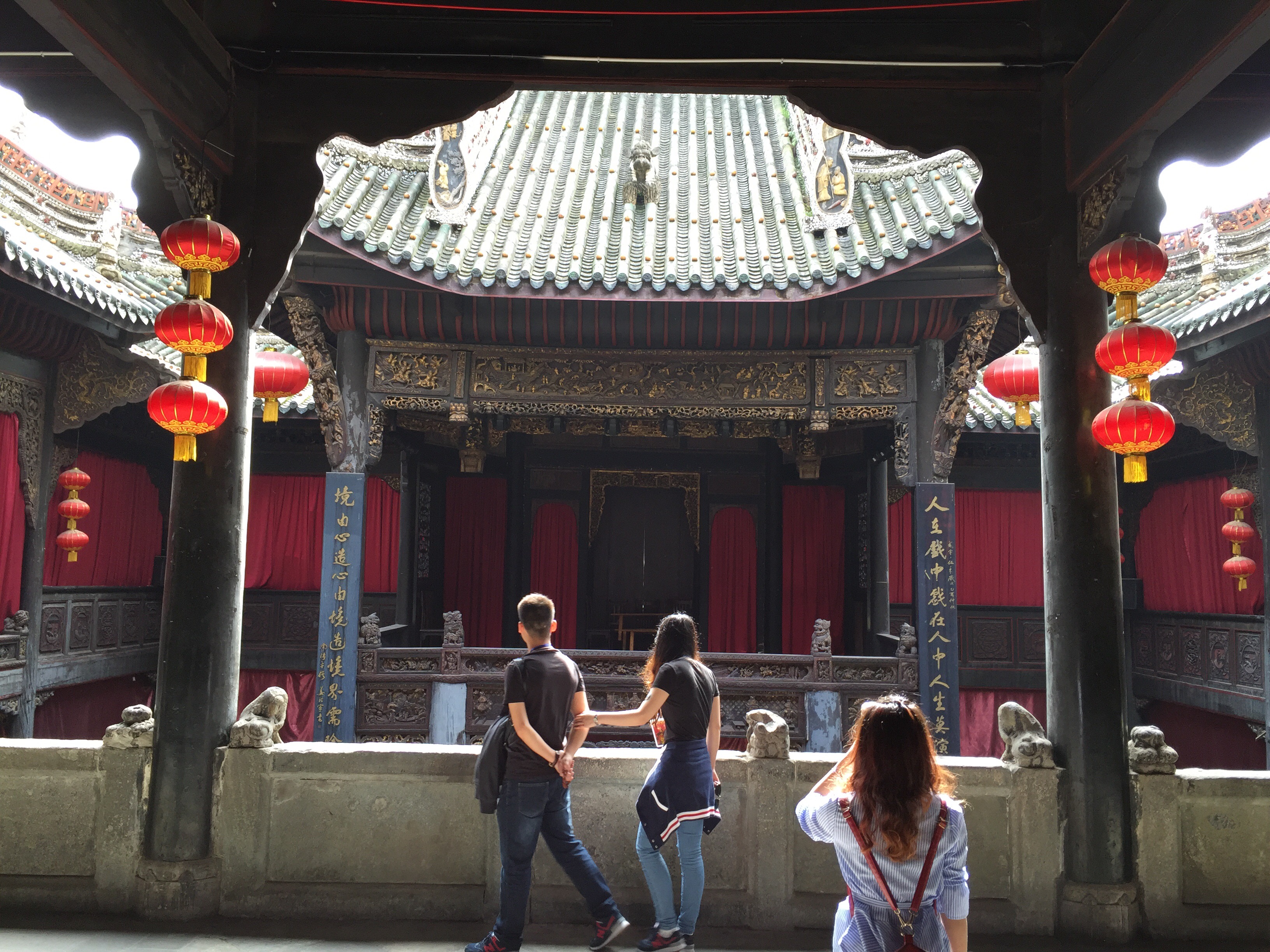 ↑游客在观赏重庆湖广会馆的戏楼。新华社资料片(本报记者王金涛摄)