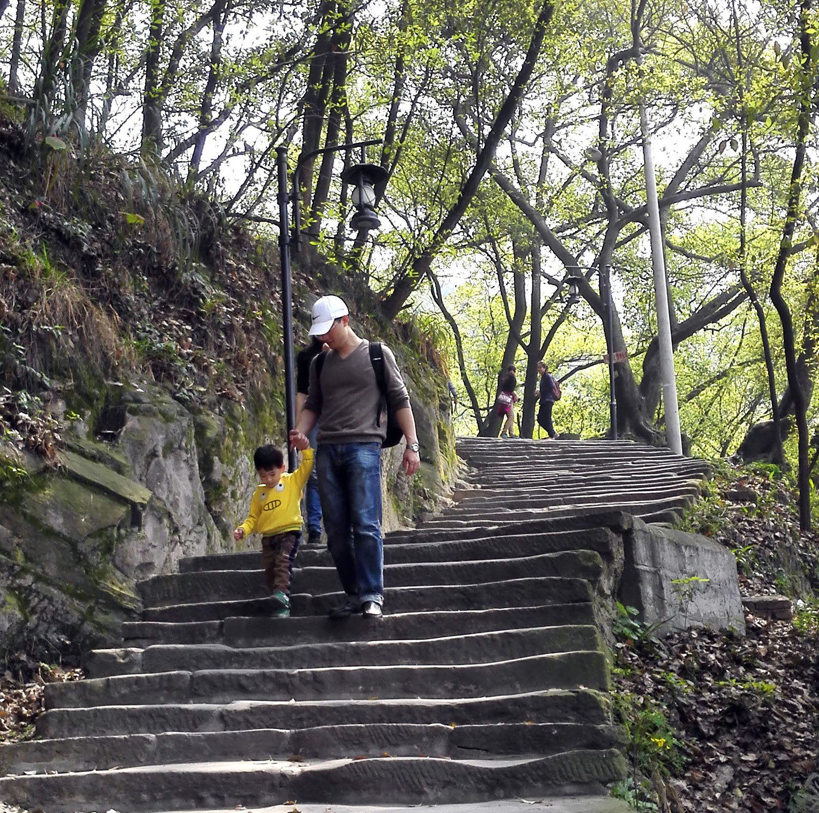 沿黄葛古道往上走,就到了敦厚坡。敦厚坡是一段曲曲折折的石板路,两边多为矮旧却别致的民居。有的民居由石头砌成,黄葛树那胡须一样的根张扬地伸展在石墙缝里;有的民居装着年代久远的木门,就像被风雨磨圆的古道石板一样,全身裸露着岁月的刻痕。民居里住的多是老人和妇女,有的在街边缝衣服,有的坐在凳子上刺绣,有的坐着晒太阳发呆。一位老伯,坐在高椅上,将赤着的双脚放在矮凳上,自由得如神仙一般。古道上,时而有挑担的男子,哼着小曲飘过。