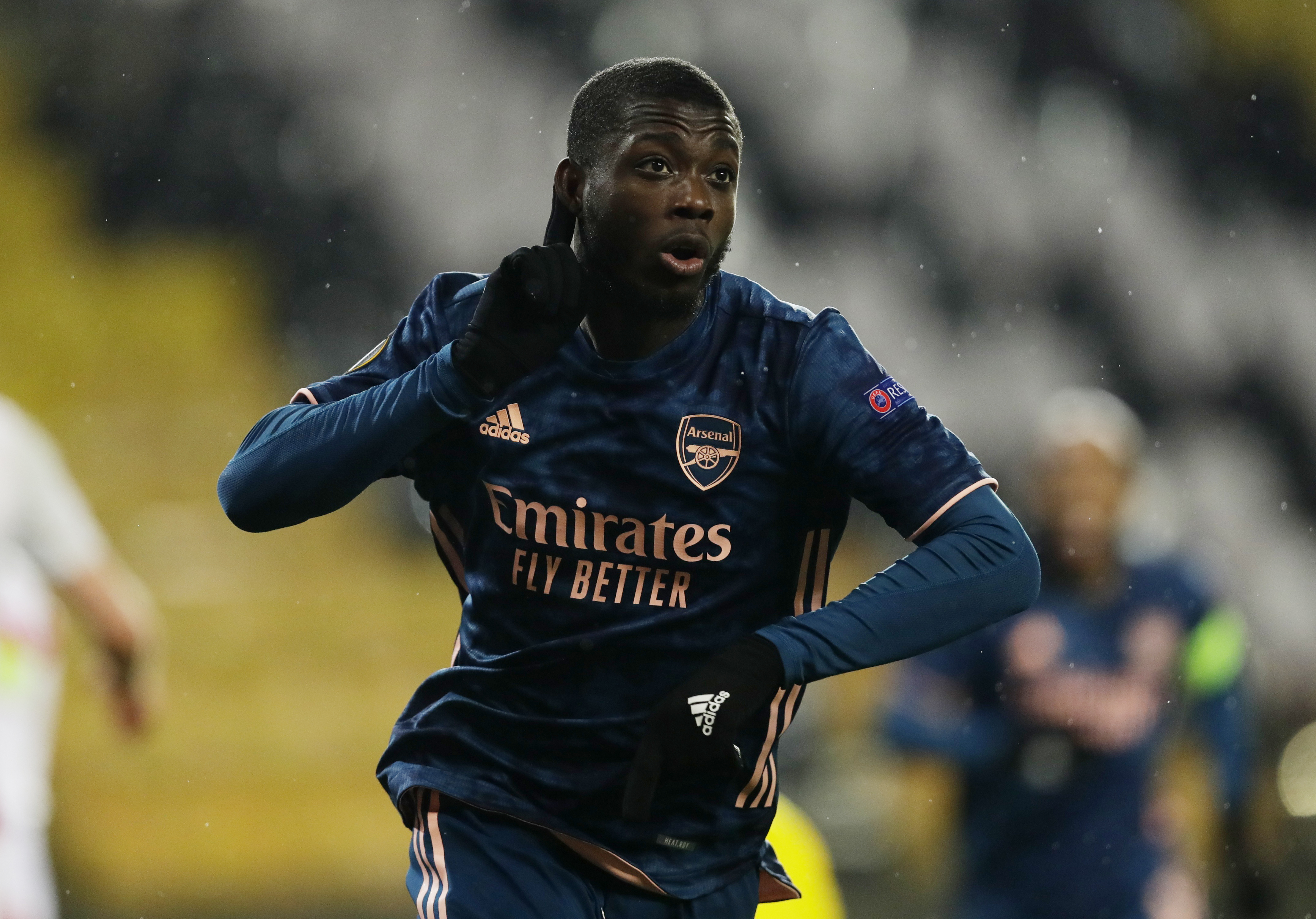 4月15日,阿森纳队球员佩佩在打进球队第一粒进球后庆祝。