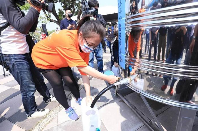 △台湾中部,民众正在接水