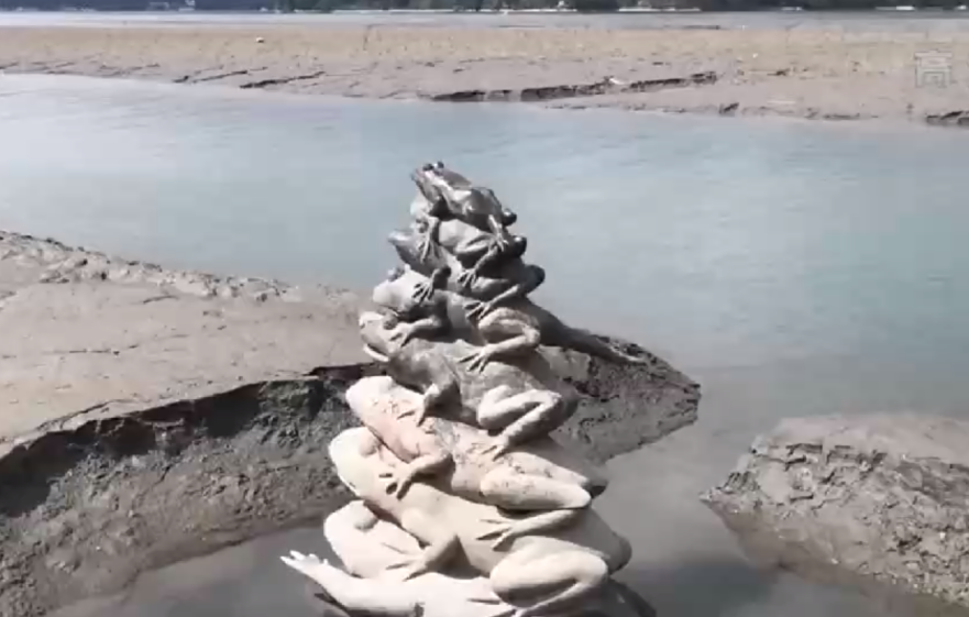 从数据上来看,日月潭的水位已经降到半世纪以来最低情况,从满水时的海拔748米降至735米左右,水位下降超过13米,蓄水率跌破三成,漏出了龟裂的湖底,景区的标志性景点“九蛙叠像”更是早“九蛙尽露”。