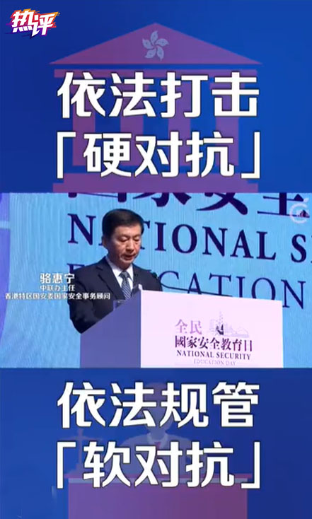 香港国安法去年6月底颁布实施以来,在不到一年时间内,犹如一柄利剑,迅速实现止暴制乱、恢复秩序,反对阵营顿作鸟兽散,头目人物或仓皇出逃,或被绳之以法。昨天,香港中联办主任骆惠宁在2021年香港“全民国家安全教育日”开幕礼致辞,语重心长地指出,“有了法律,有了机制,有了队伍,执行和落实就尤为重要。凡破坏国家安全的,属‘硬对抗’,就依法打击;属‘软对抗’,就依法规管。维护国家安全,是特区行政、立法、司法机关的共同责任”。