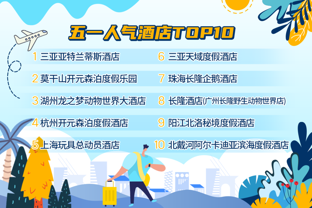 上海、北京、三亚、广州、成都、重庆、西安、厦门、杭州、深圳位列前十大出行目的地。从机票订单增长情况来看,扬州、舟山、北海、敦煌、恩施、海口、三亚成为今年五一的黑马目的地。