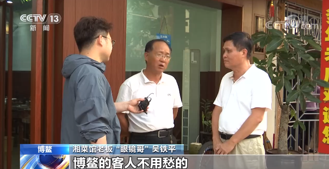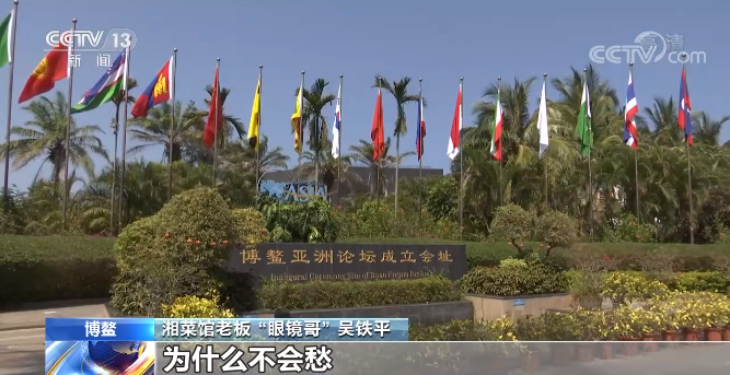 湘菜馆老板 “眼镜哥”吴铁平:博鳌的生意不会愁,为什么不会愁啊?因为有博鳌亚洲论坛会议的名片,博鳌的客人不用愁的。