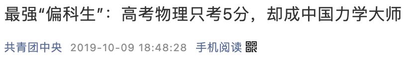 钱伟长属于严重的“偏科生”