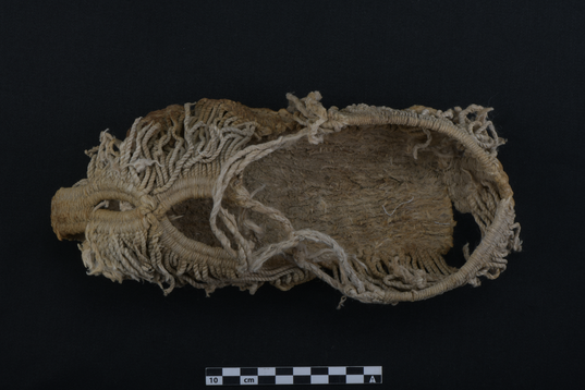 △麻鞋。由本色麻绳编成,有使用过的痕迹。