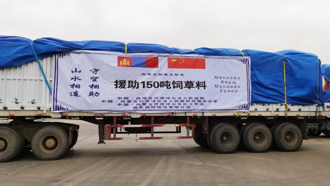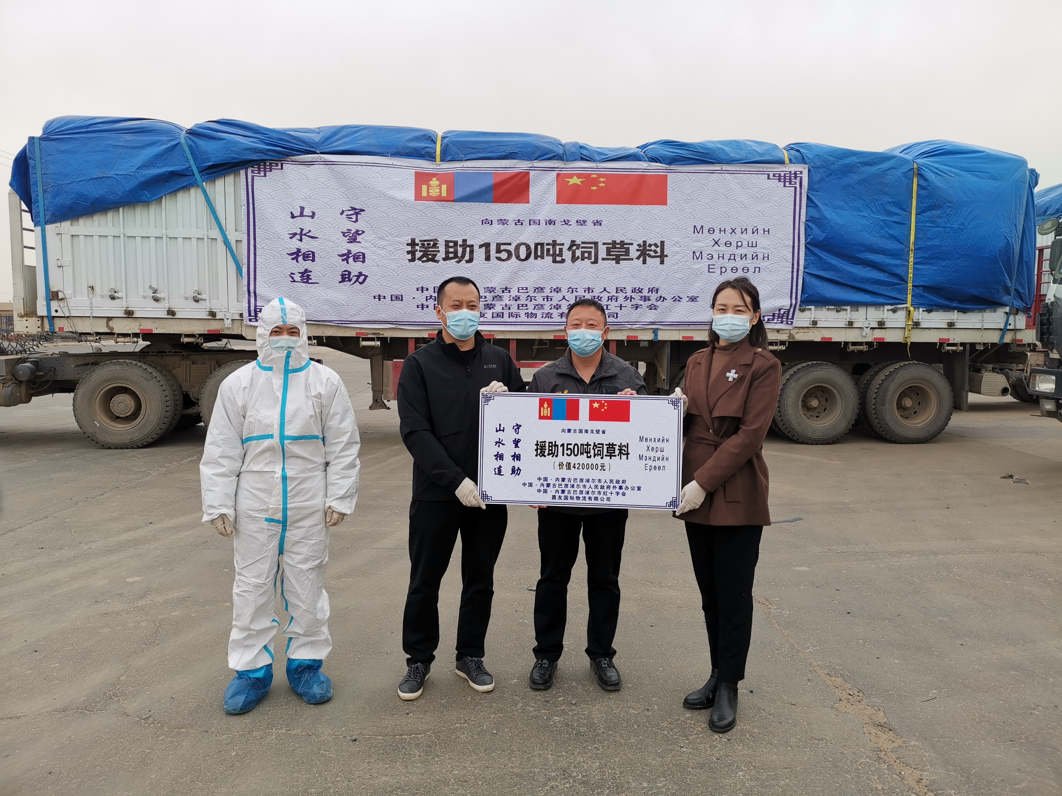据巴彦淖尔市外事办主任何磊介绍,去冬今春,蒙古国南戈壁省先后遭遇白灾及风沙灾害,饲草料短缺。巴彦淖尔市接到蒙古国南戈壁省请求援助饲草料的来函后,巴彦淖尔市外事部门联合红十字会、海关、出入境边检站等部门协同工作,由嘉友国际物流股份有限公司出资,向蒙古国援助150吨精饲料。