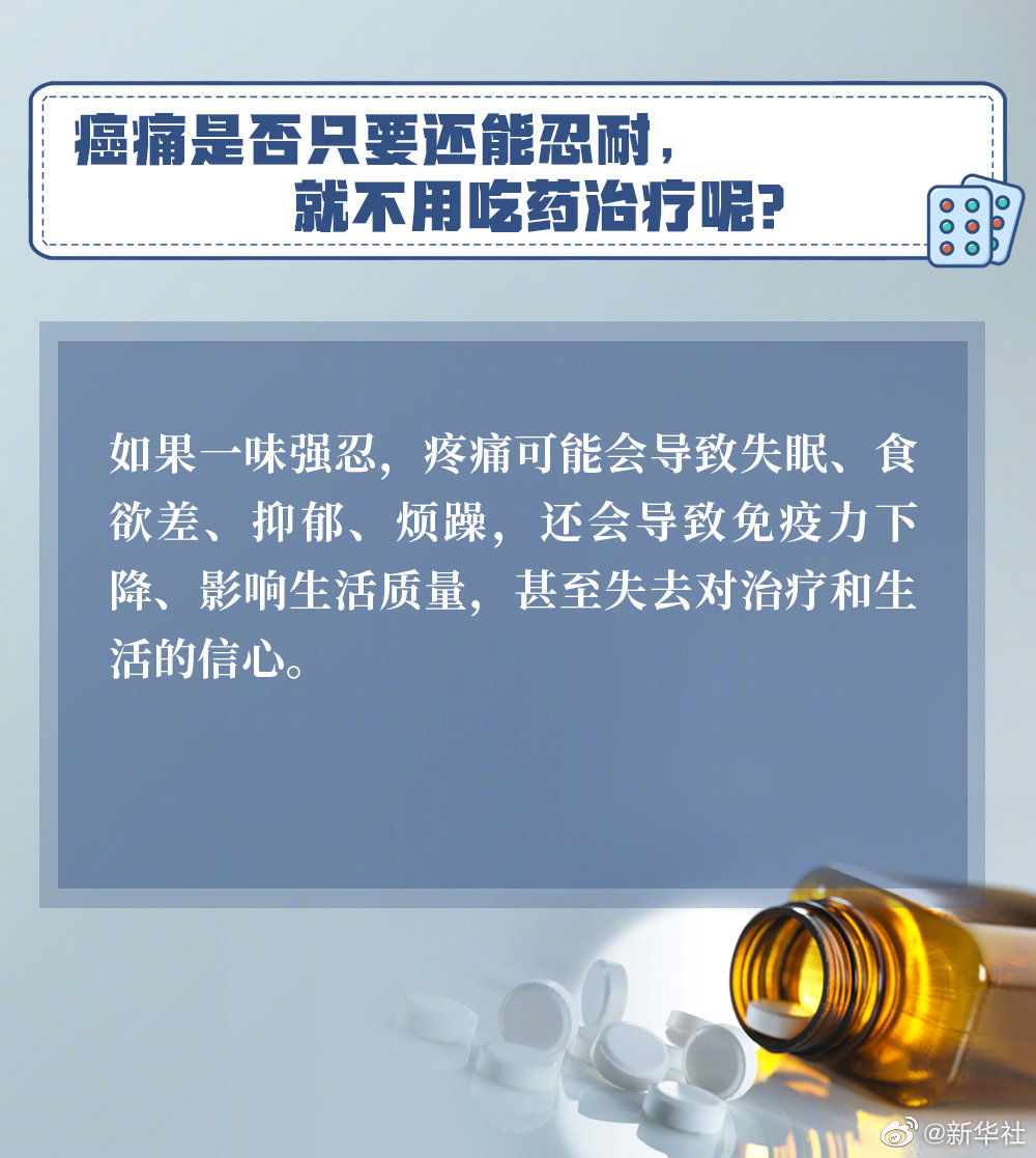 【向癌痛说不 癌症患者如何正确使用止痛药】4月15日至21日,是第27届全国肿瘤防治宣传周。许多晚期癌症患者都有过“忍痛”的经历。使用止痛药会上瘾吗?是否只有剧烈疼痛时才需使用?应该如何正确使用?