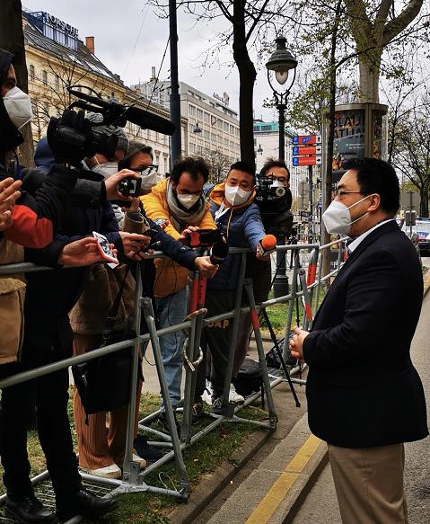 当地时间4月17日,正在参加新一轮伊核全面协议联委会的中国常驻维也纳联合国代表王群大使表示,中方对联委会工作重新回到正轨并在这两天所开展的建设性工作感到鼓舞。