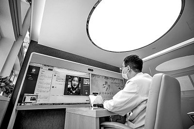 北京协和医院内分泌科医生在远程医学中心出诊。新华社发