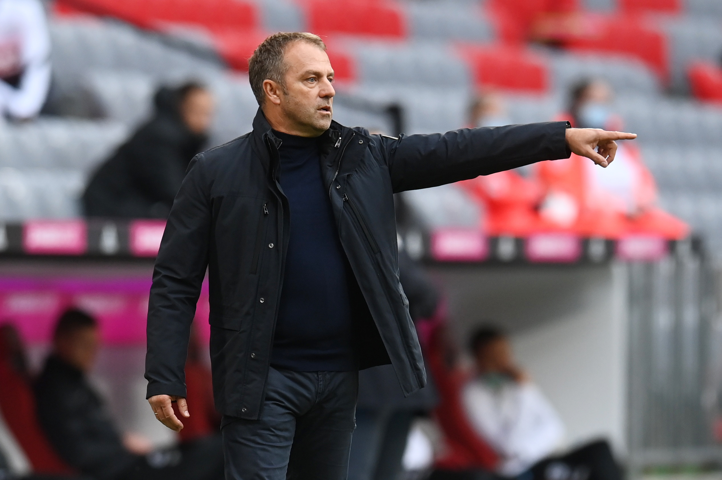 资料图:拜仁慕尼黑队主教练弗利克在场边指挥