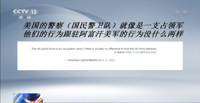 “美国的警察(国民警卫队)就像是一支占领军,他们的行为跟驻阿富汗美军的行为没什么两样”。