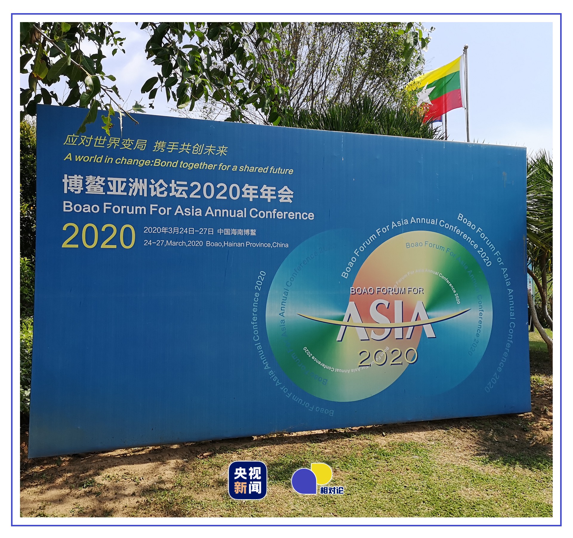△大会前夕,总台央视记者在会场附近看到这个没有用上的背板。2020年,博鳌亚洲论坛因新冠疫情取消年会。