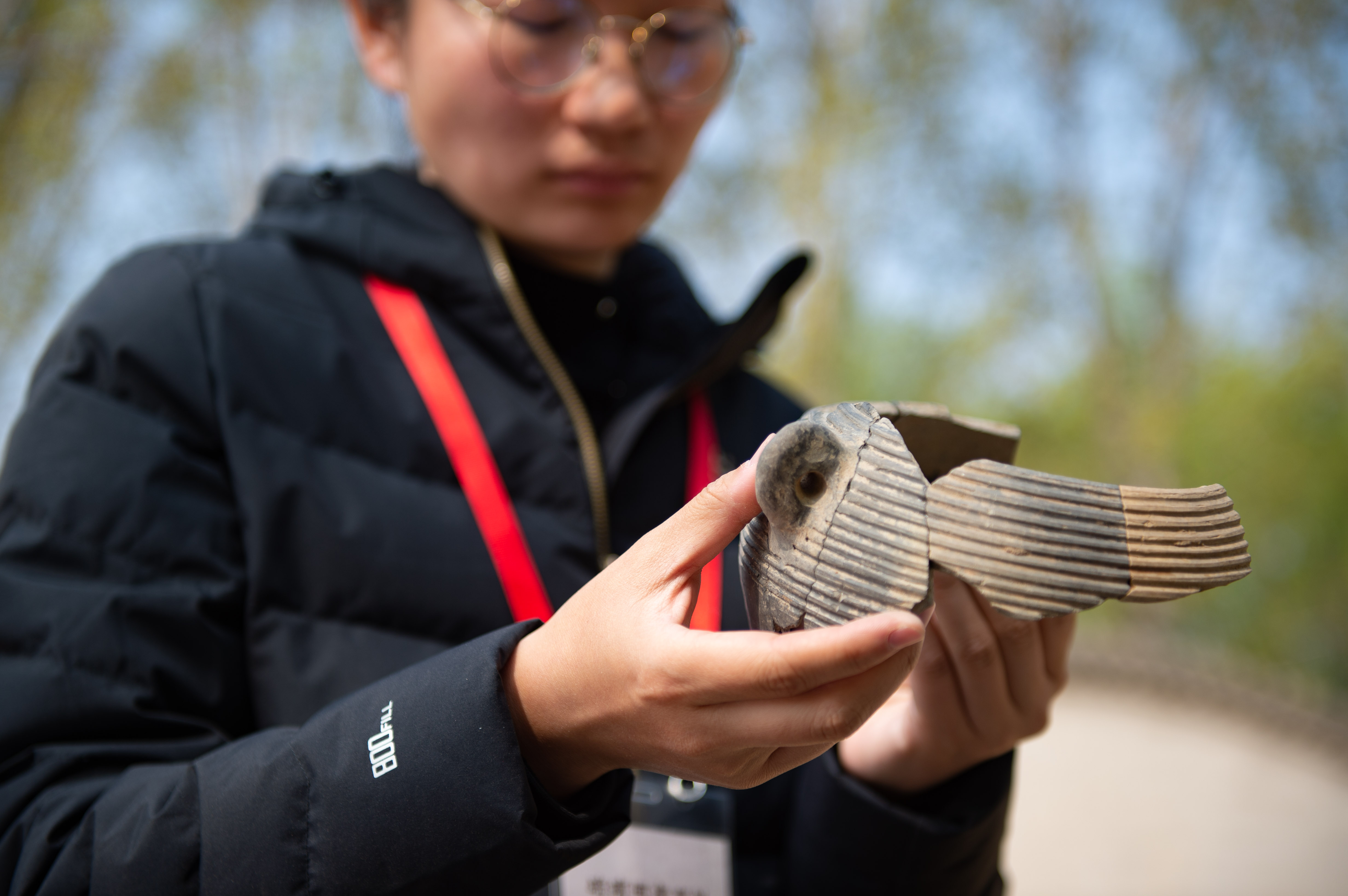4月8日,考古人员展示从琉璃河遗址出土的文物。新华社记者 陈钟昊 摄