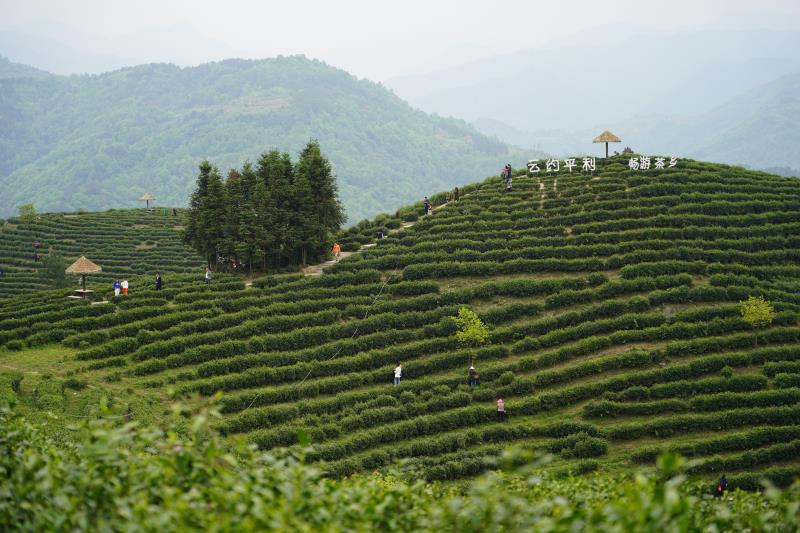 人不负青山,青山定不负人。正当罗显平给游客们讲解当地种茶历史变迁的时候,一架无人机从茶园上空飞过。茶园对面的山上,“云约平利,畅游茶乡”八个大字映入人们眼帘。