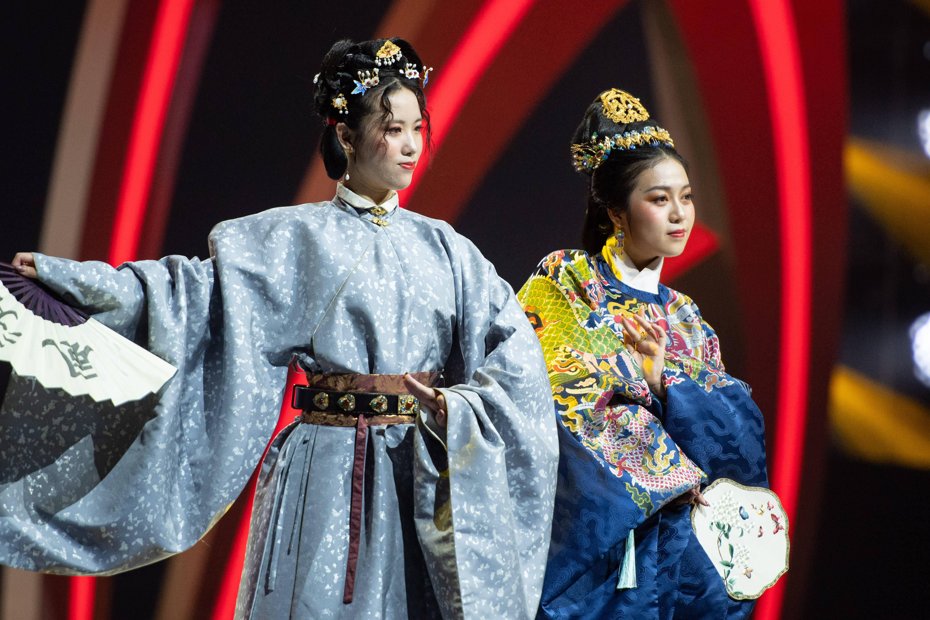 17日晚,本次活动的重头戏——华服秀典在澳门金光综艺馆举行。来自内地20余个华服社团、商家的数百位青年模特身穿华服,在现场4000名观众和线上2000万网友的一同注视下,缓缓登上舞台,身姿曼妙、华彩飘逸,于顾盼之间展现传承千年的大气典雅。