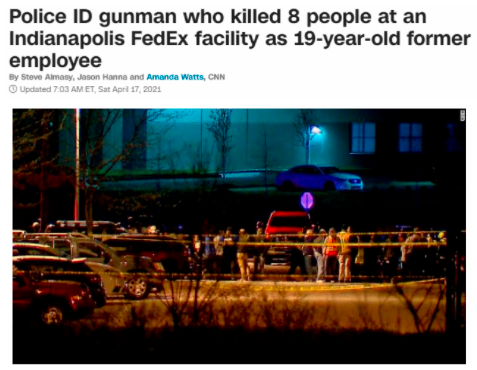 近日,美国再次连发枪支暴力惨案。其中最严重的一起发生在当地时间15日深夜:印第安纳州首府印第安纳波利斯市一联邦快递中心发生枪击事件,19岁的枪手布兰登·霍尔在射杀8人、射伤数人后饮弹自尽。详情>>>