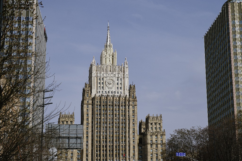 4月16日在俄罗斯首都莫斯科拍摄的俄罗斯外交部大楼。(新华社发,叶甫盖尼·西尼岑摄)