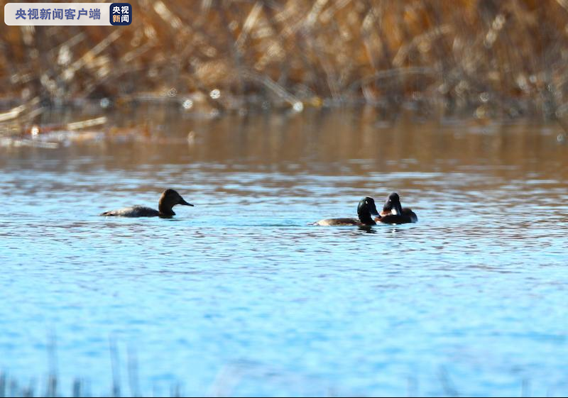 △青头潜鸭在大石河游弋。(黑豹野生动物保护站 摄影:李理)