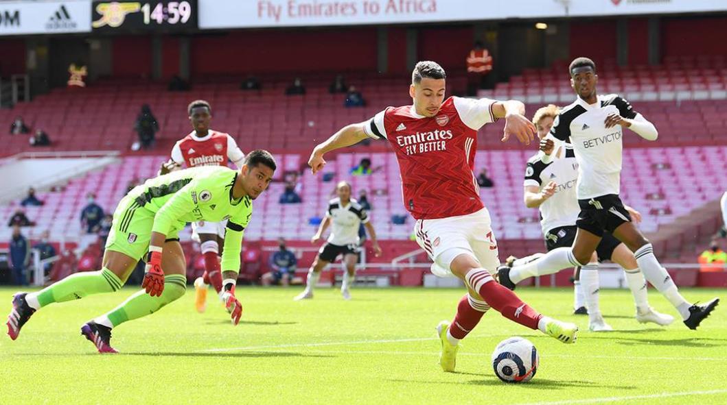 本周和曼联一道晋级欧罗巴四强的阿森纳则没能同样在英超赛场告捷。他们下半场被富勒姆利用点球机会率先破门,而后苦战到第97分钟才由恩凯蒂亚补射扳平。
