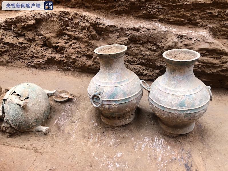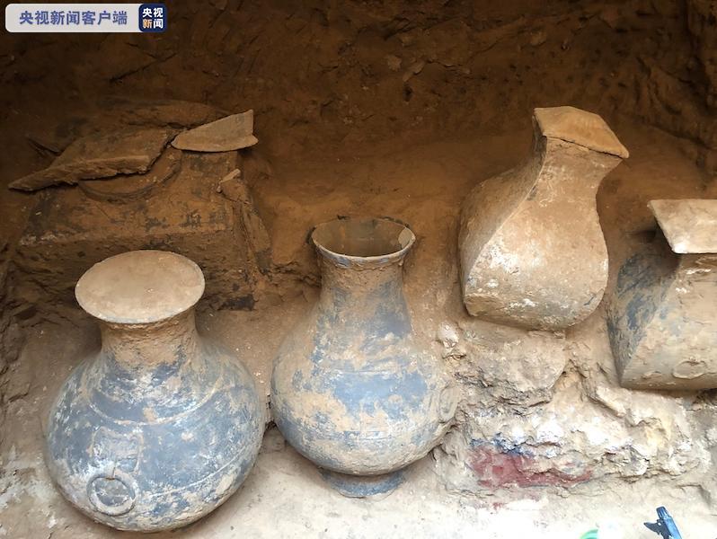 陕西大堡子墓地地处泾河南岸台塬(咸阳塬东北部),黄土堆积丰厚、地势平整开阔。2020年至今,陕西省考古研究院在发掘区域考古工作,截至目前,清理墓葬400余座,出土陶、铜、玉、铁等各类遗物近2000件(组),以西汉早期遗存为主要文化内涵。本次发掘的墓葬为竖穴墓道土洞墓,是目前在大堡子墓地发掘的保存情况最完整,出土器物数量最多,器物种类最丰富,器物组合最完整的一座墓葬。