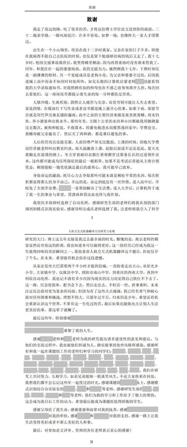近日,中国科学院自动化所一博士论文的致谢部分在网上引发热议。