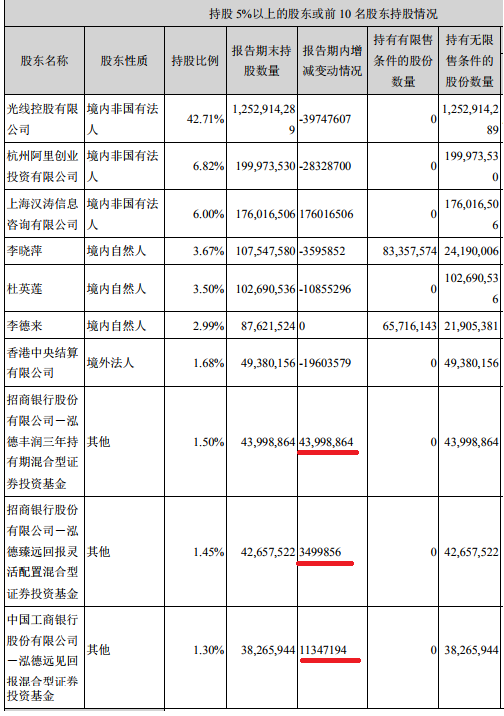 光线传媒2020年年报显示,邬传雁管理的泓德丰润三年持有、泓德臻远回报、泓德远见回报3只基金分别位列光线传媒第六、第七、第八大流通股股东,同时位列第八、第九、第十大股东,持有4399.89万股、4265.75万股和3826.59万股,三只基金持股占公司总股本的4.25%、流通股的4.48%。