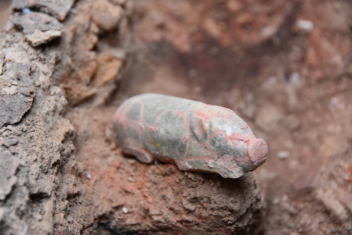 这是在西汉早期墓葬中发现的玉猪。新华社记者杨一苗摄