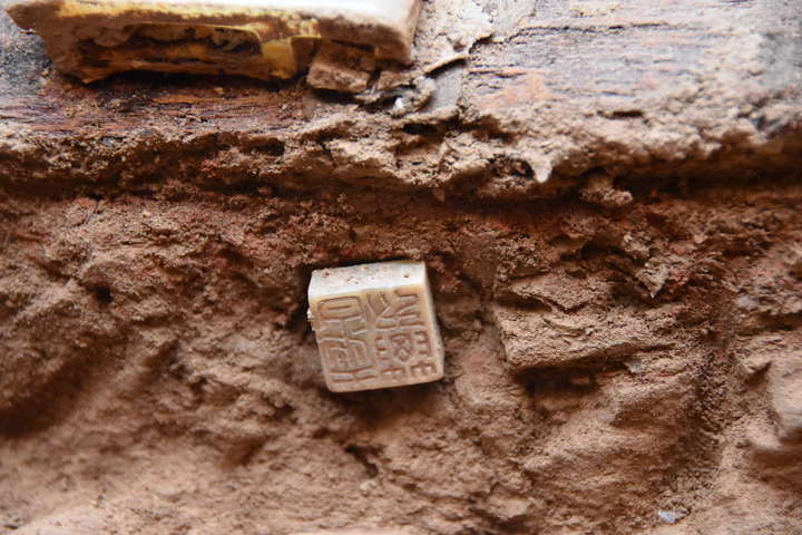 这是在西汉早期墓葬中发现的印章。新华社记者杨一苗摄