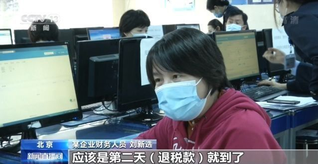 某企业财务人员 刘新选:(在网上)数据填完之后,如果要是退税的话,直接就出来这个框,点击就可以了。我是当时申请的,应该是第二天(退税款)就到了。