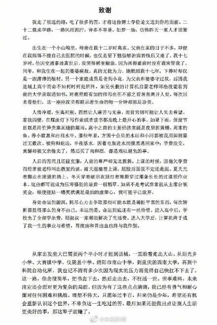 致谢有洋洋洒洒几千字的,当然也有简洁凝练不废话的。