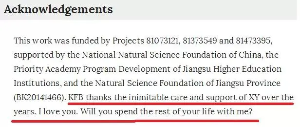 2016年,南京中医药大学的一位研究生在《科学报告》(Scientific Reports)上发表的论文中与女友求婚。