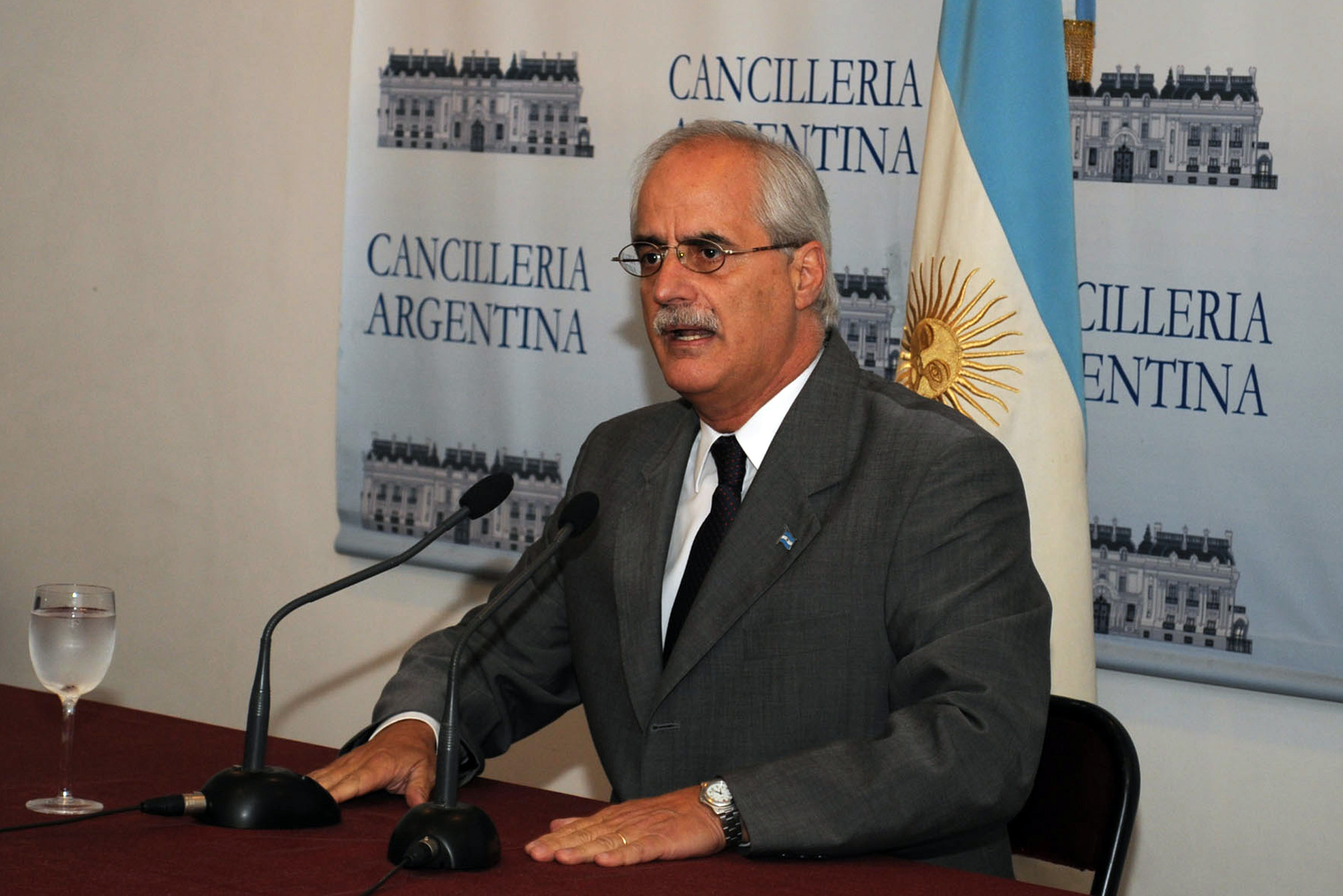 2009年2月26日,时任阿根廷外交部长豪尔赫·塔亚纳在布宜诺斯艾利斯举行新闻发布会。(新华社/美洲通讯社)
