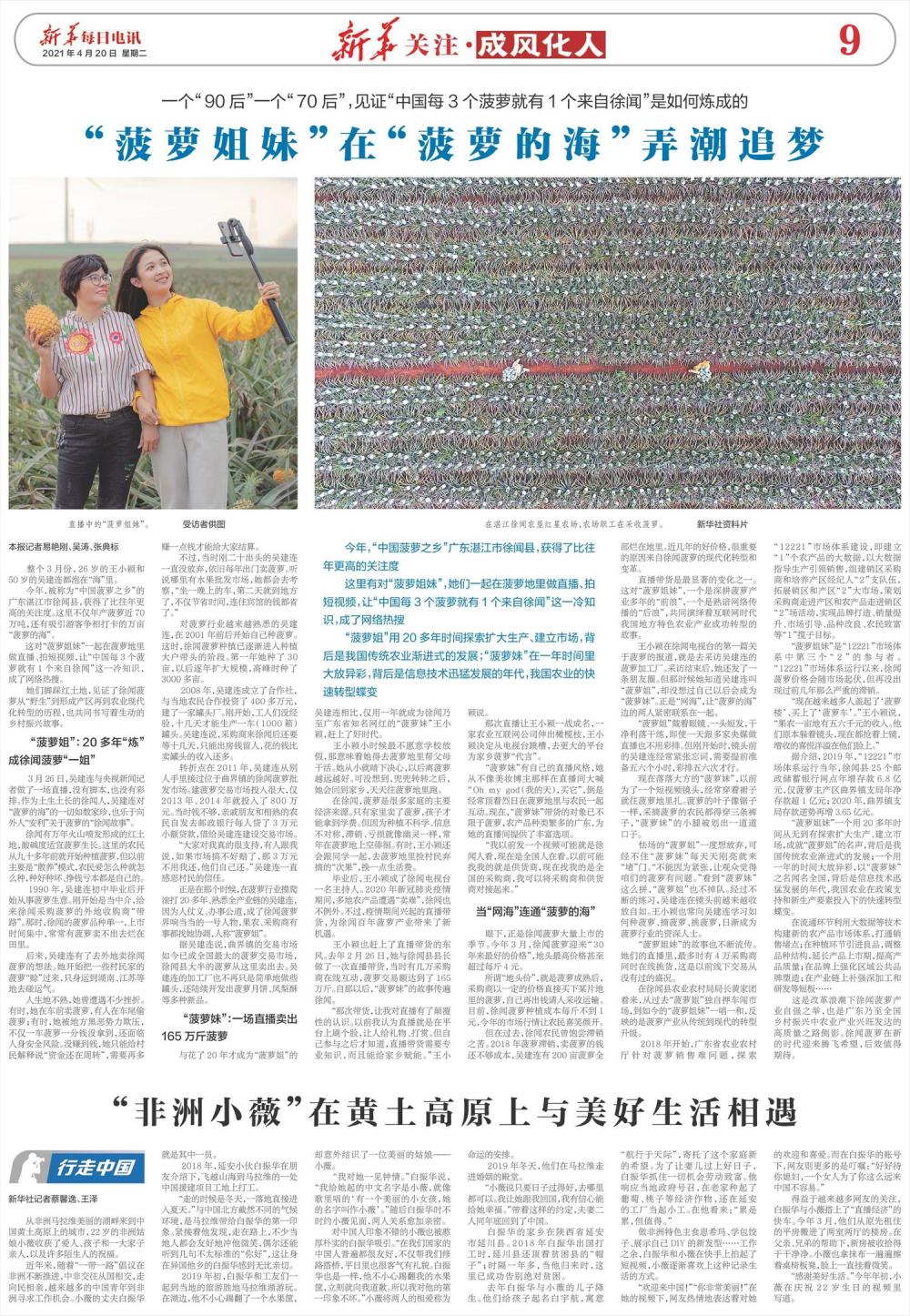 直播带货是最显著的变化之一。这对“菠萝姐妹”,一个是深耕菠萝产业多年的“前浪”,一个是熟谙网络传播的“后浪”,共同演绎着互联网时代我国地方特色农业产业成功转型的故事。