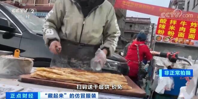 在桑园街的小吃摊上,不少都挂着大喇叭,上面摊着几个微信二维码,只要扫码添加这些微信号就能免费拿到烤肠、酱香饼、豆腐脑等各种小吃。