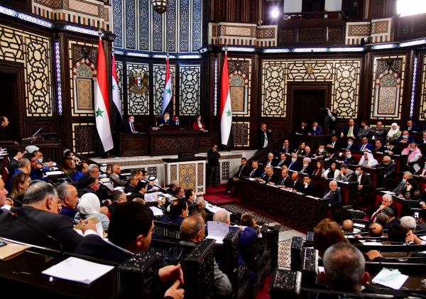 这是4月18日在叙利亚大马士革拍摄的议会会议现场。(新华社)