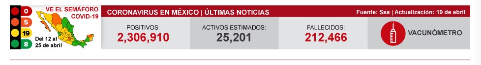 当地时间4月19日,墨西哥卫生部宣布,截至4月19日晚7时,墨西哥全国累计新冠肺炎确诊病例2306910例,较前一天新增1308例;累计死亡212466例,较前一天新增127例。(总台记者 盛嘉迪 吕兴林)