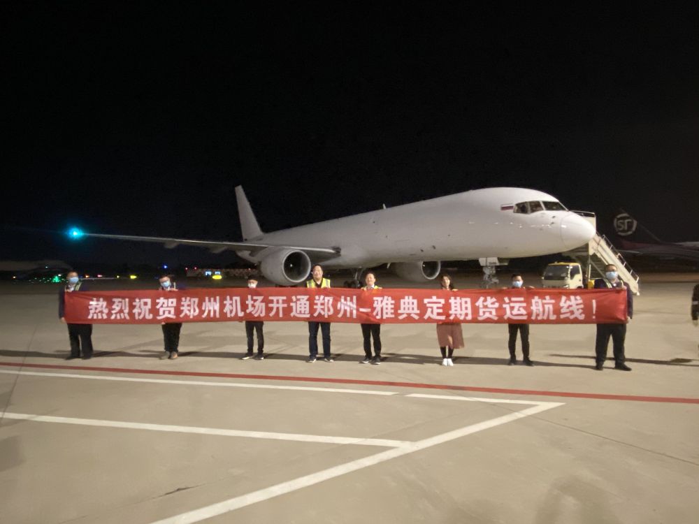 新华社郑州4月20日电(记者李文哲)18日晚,随着俄罗斯叶罗费航空公司RF9420航班满载中国货物,从郑州新郑国际机场起飞,郑州至雅典定期货运航线顺利首航。记者从河南省机场集团获悉,这是郑州机场继开通至布达佩斯国际定期货运航线后,开通的第二条中东欧定期货运航线,也是中国飞往雅典的首条定期货运航线。