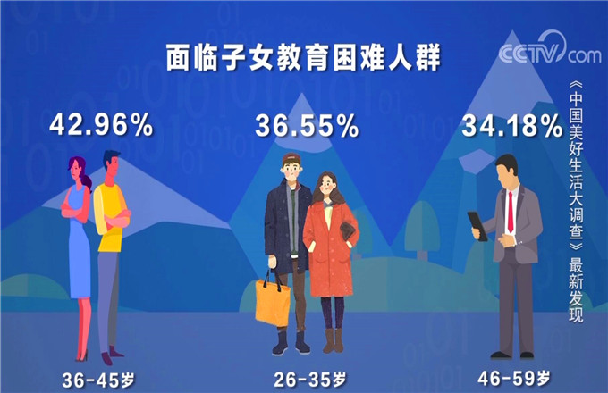 央视网消息:《中国美好生活大调查》的调查数据显示,2020年,在百姓面临的家庭困难选项中,“子女教育”排在第三位,占比36.19%,达到了过去5年来的最高点。