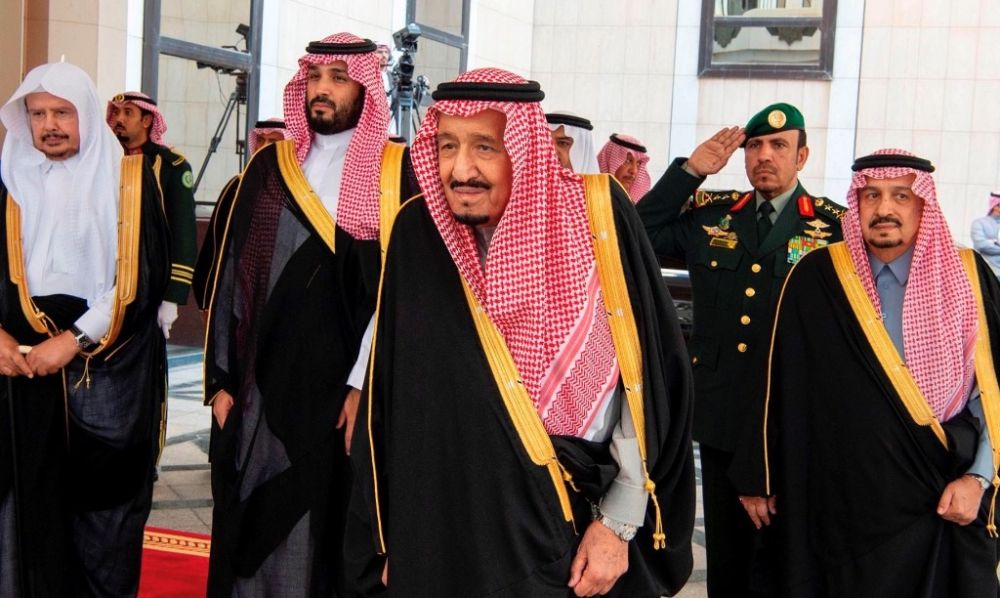 2019年11月20日,沙特阿拉伯国王萨勒曼(前)在首都利雅得出席沙特新一届协商会议(议会)。(新华社发)