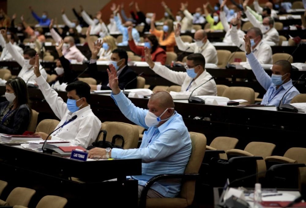 4月16日,与会代表在古巴首都哈瓦那参加古巴共产党第八次全国代表大会。(新华社/拉美社)