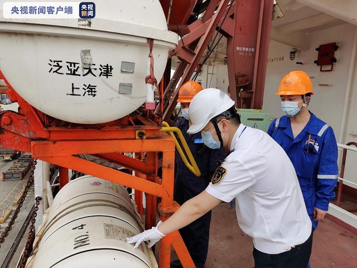 △深圳海事局审核员现场检查“泛亚天津”轮救生设备