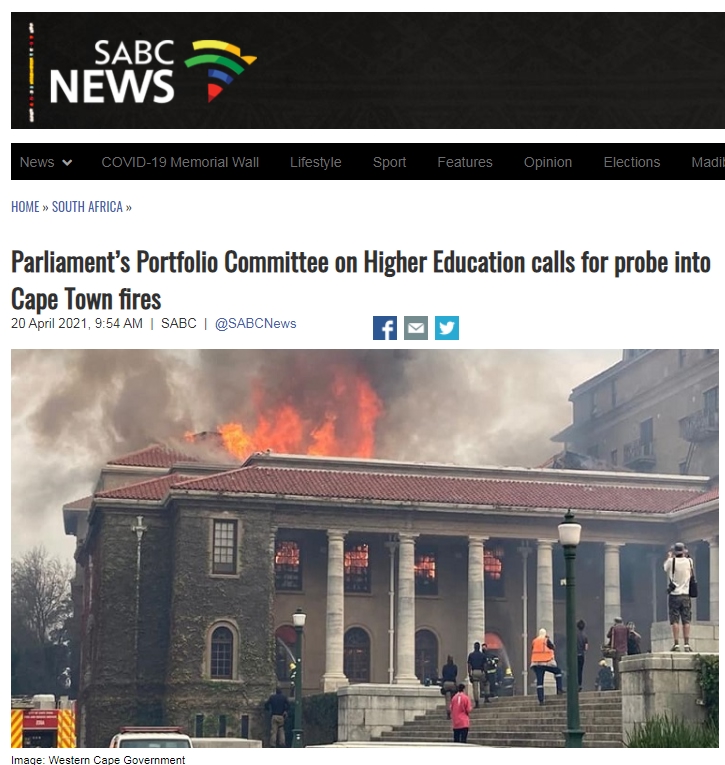 据南非国家广播公司当地时间4月20日报道,开普敦桌山火灾发生后,开普敦大学数座教学楼和宿舍楼被毁,最为严重的是拥有200年历史的大学图书馆被付之一炬,馆中存有大量古籍孤本。南非议会高等教育投资委员会呼吁政府和相关部门对此次火灾造成如此巨大的损失展开调查和反思。
