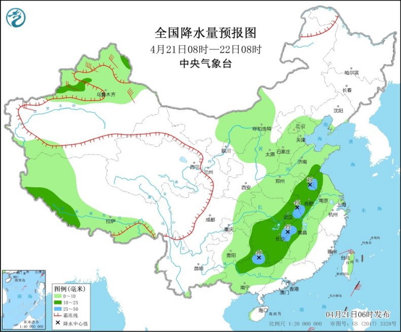 据中国天气网消息,预计今天(4月21日)将会是本轮中东部大范围降水的最强时段,安徽、湖北等多地局地大雨上线,提醒公众注意做好防范工作;此外,今天起,北方多地气温将大幅回落,北京、天津等多地最高气温将降至20℃上下,公众需及时添衣,避免感冒。