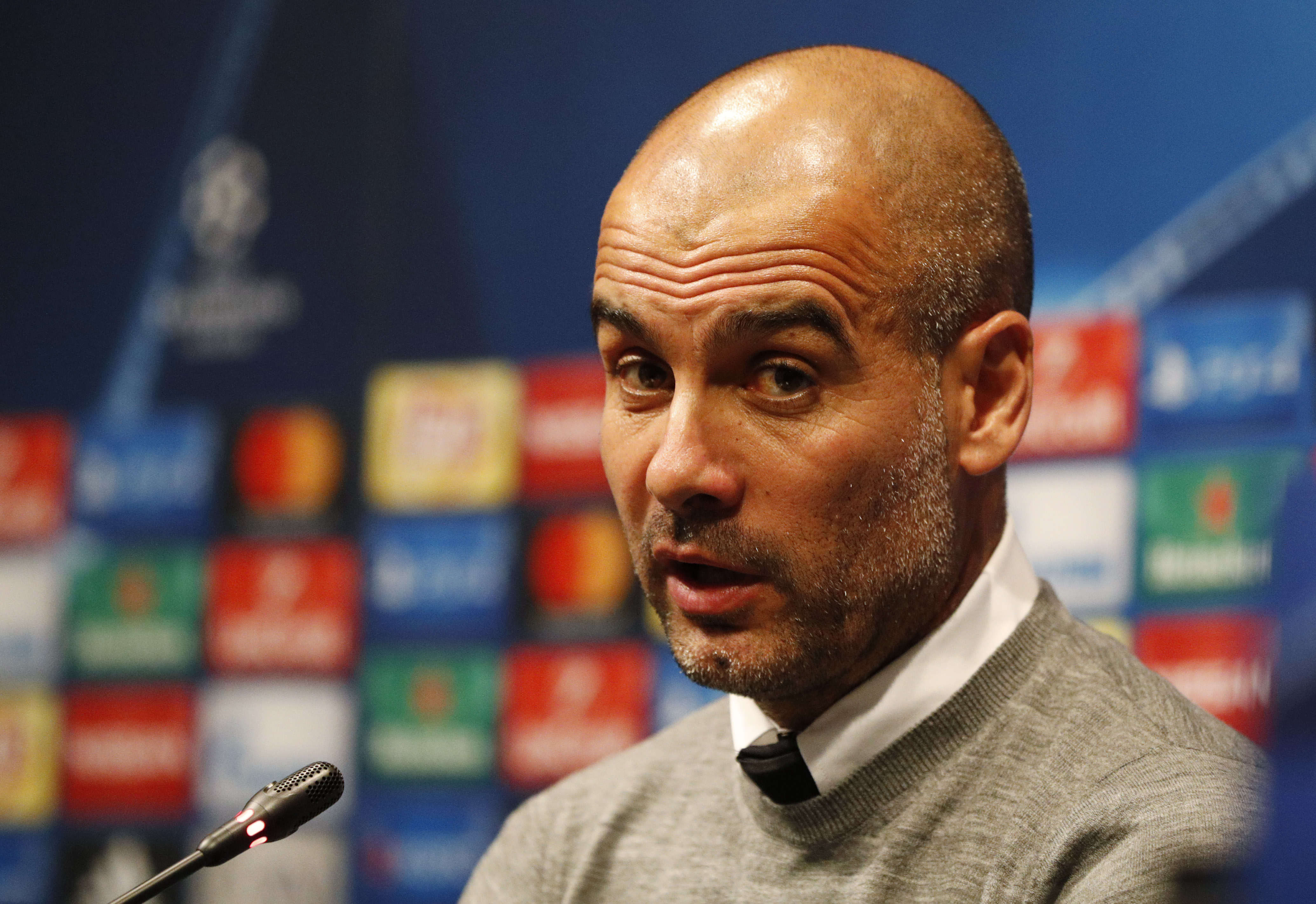 资料图:曼城队主教练佩·瓜迪奥拉出席记者会