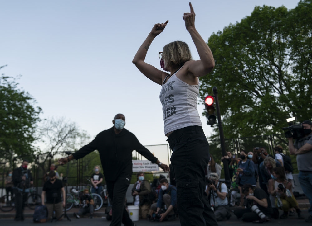 4月20日,人们得知肖万被控的谋杀和过失杀人等三项罪名全部成立后,在美国华盛顿白宫前聚集。(新华社记者刘杰摄)