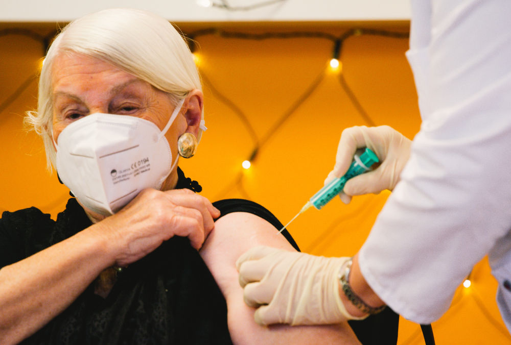 2020年12月27日,在德国科隆一家养老院内,一名老人接种新冠疫苗。(新华社发)